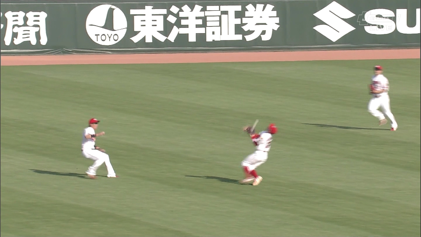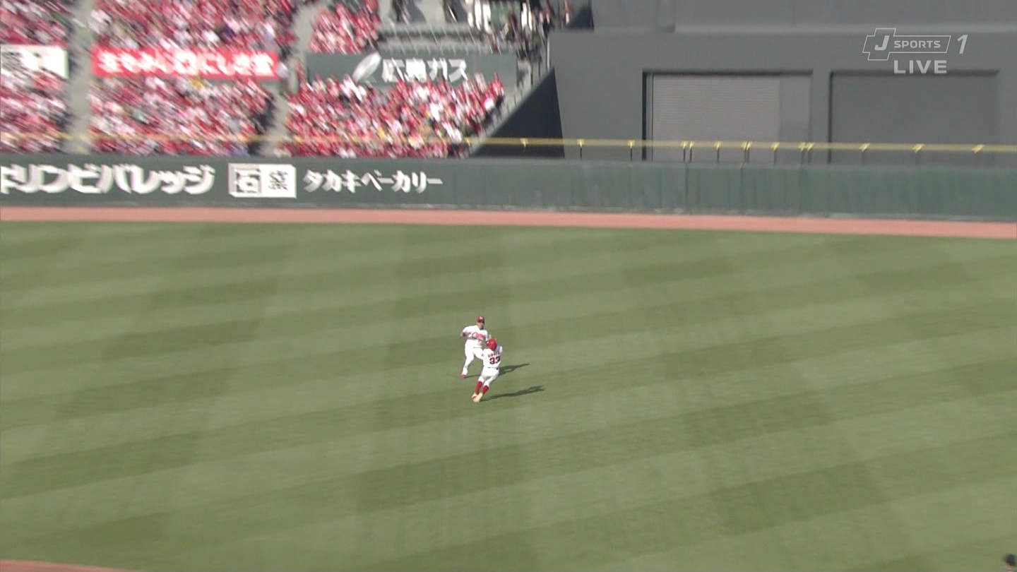 菊池「なーにそこはワイの守備範囲やでー」背面キャッチ