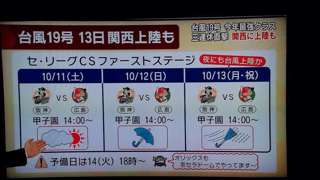 今年最強の勢力を持ち“スーパー台風”と恐れられる台風19号が、11日開幕のセ・リーグのクライマックスシリーズ(CS)ファーストステージ(甲子園)で阪神には追い風、広島には逆風となる可能性が出てきた。
