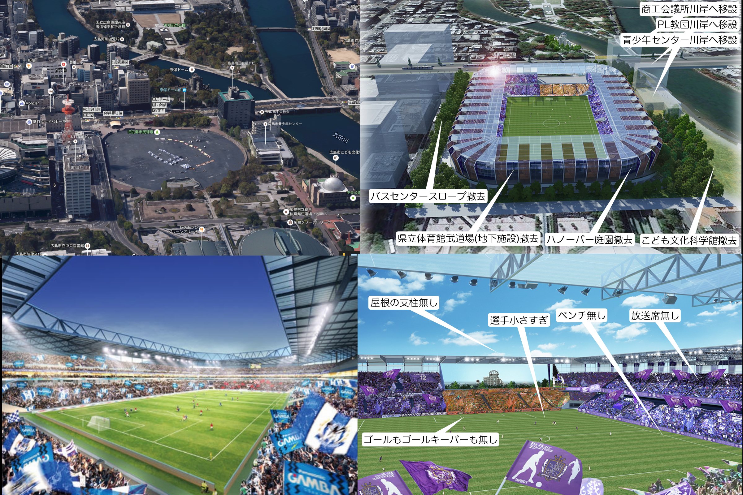 実は、平和記念公園から原爆ドームと続く流れが途切れる「連続性」を問題として、過去の議論ではサッカースタジアムが「市民ニーズが高い」とされていたにも関わらず、否定されてきた。