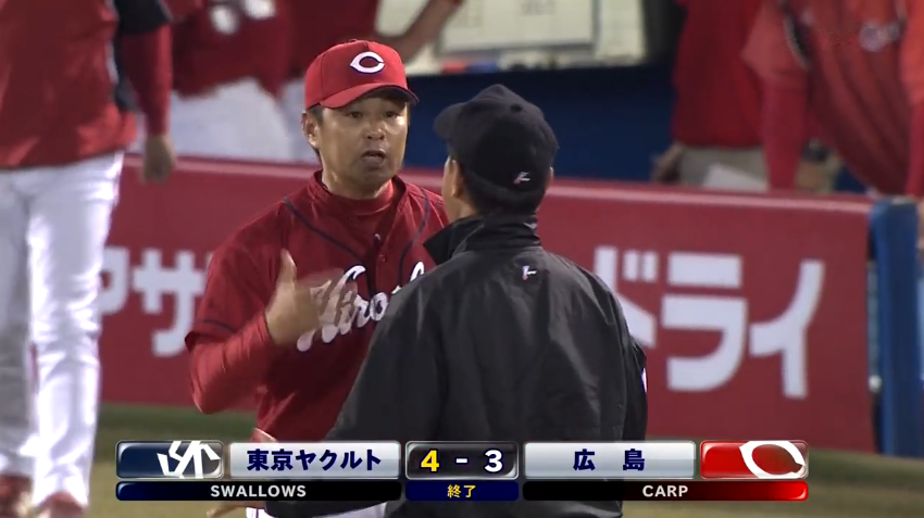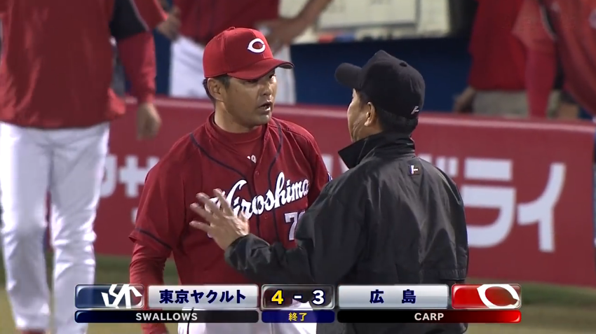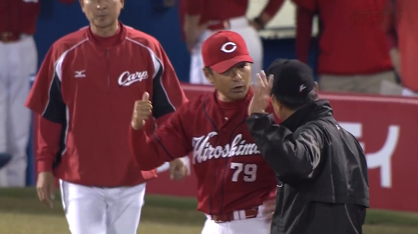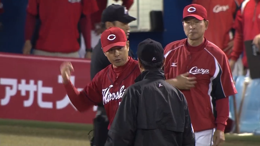 緒方孝市監督(47)は三塁走者の離塁が早いのではと抗議するも、判定は覆らなかった。試合後の談話は以下の通り