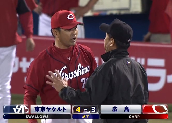 離塁早い!緒方監督、抗議実らず●V犠飛でさよなら