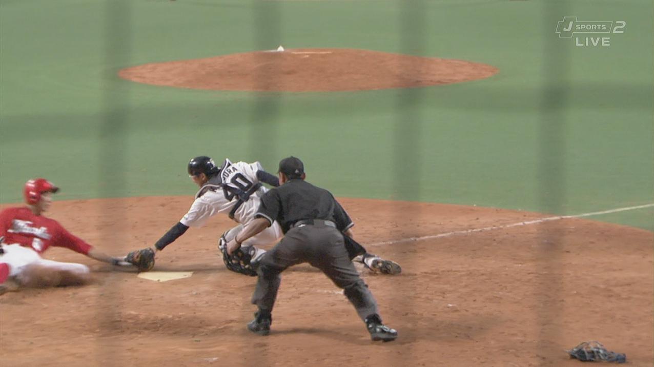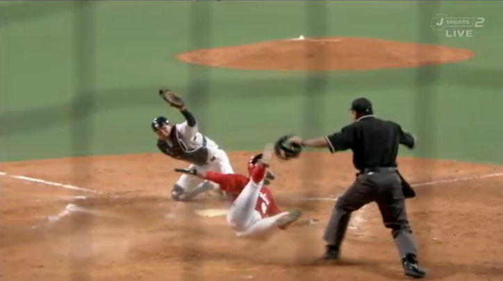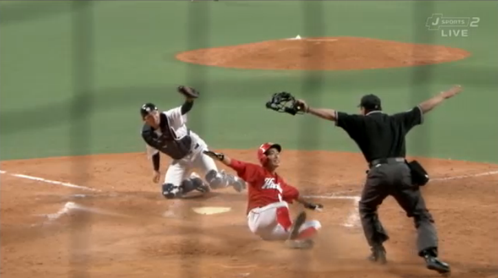 本塁クロスプレー、ビデオ検証で判定覆る 広島の得点認められず