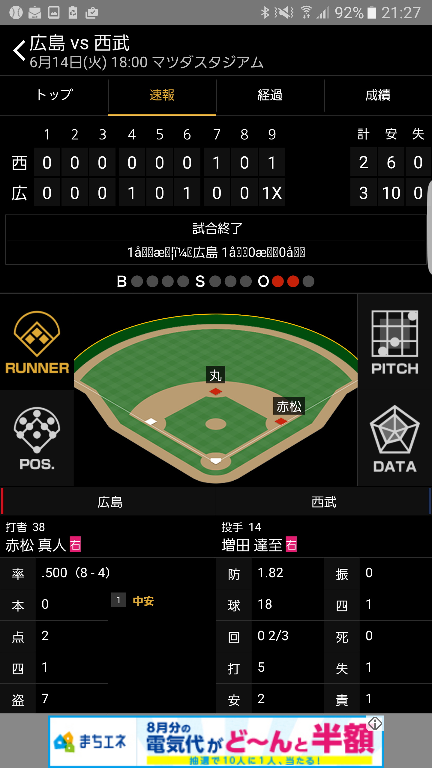 「交流戦、広島3×-2西武」(14日、マツダスタジアム)