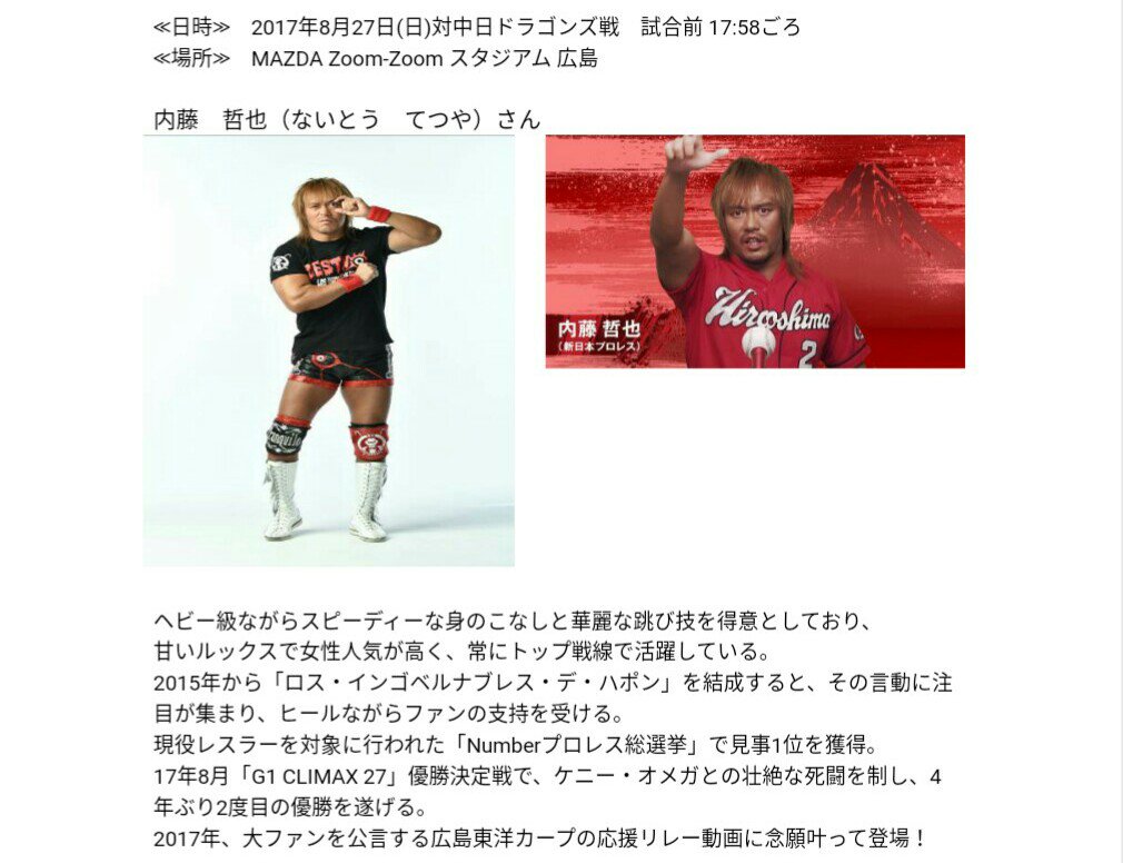※Twitter上でも、カープファン&プロレスファンから祝福のメッセージが内藤哲也の元へ届くワイもそこで知ったわ