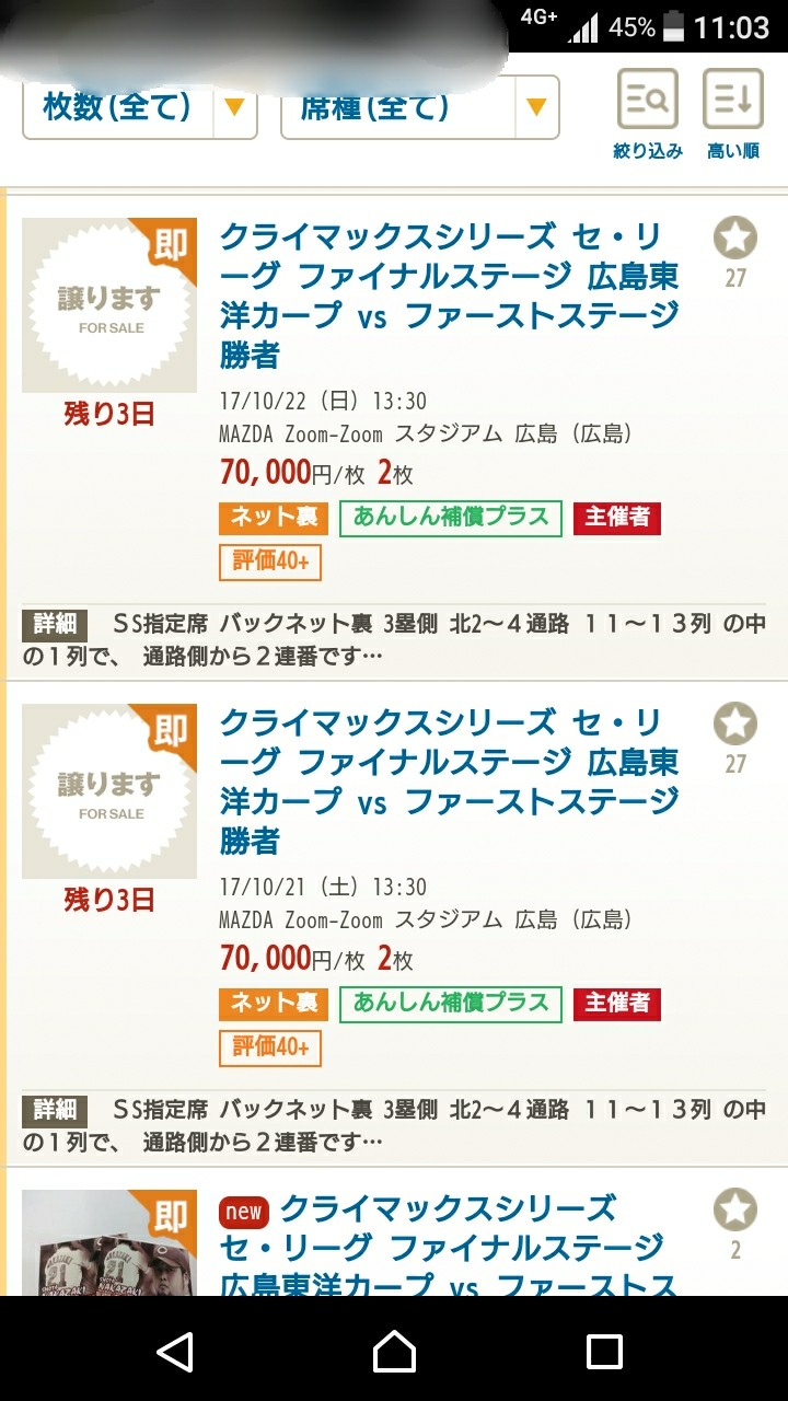 年間指定席の転売屋はCS、日シリチケットの数枚で来年のチケット代を稼いどるやんな(笑)