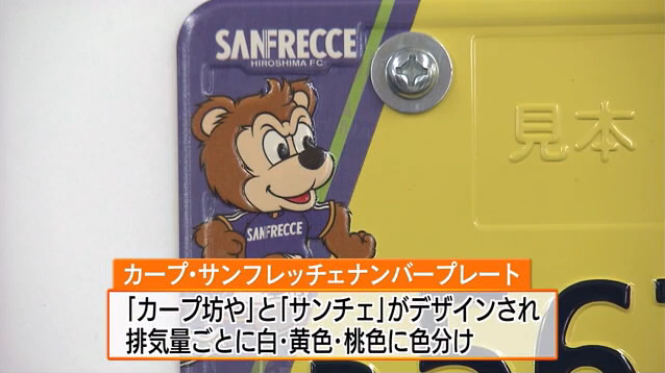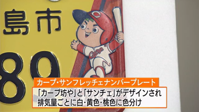 「カープ坊や」と「サンチェ」をデザインしたナンバープレートの交付始まる 広島市