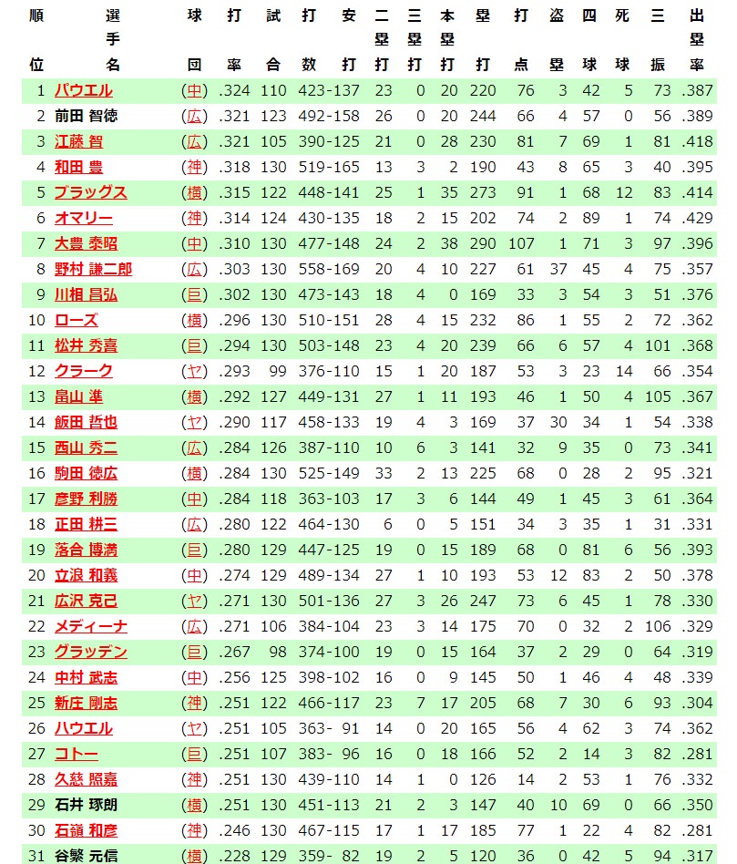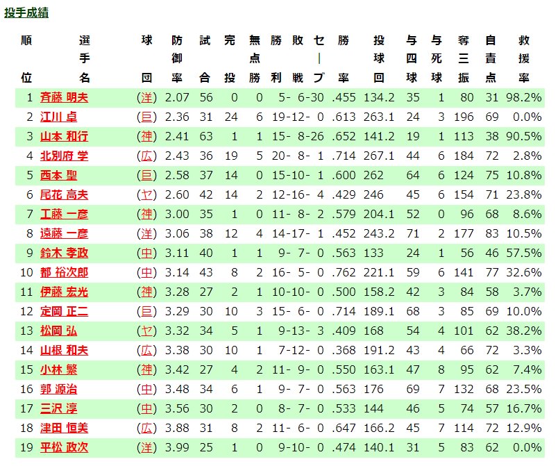 黒田博樹が抜けた投手陣は、薮田和樹らの台頭など若手投手陣の底上げに成功し、見事37年ぶりの連覇を達成した。