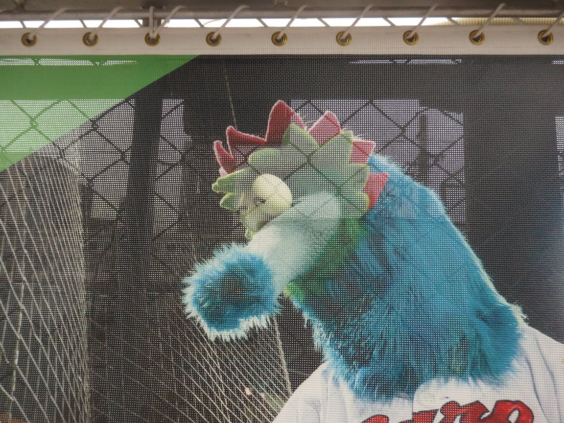 ちなみにこのカープ看板、近寄ってみると格子状に作られており、背後の景色も透けて見える仕様になっています。