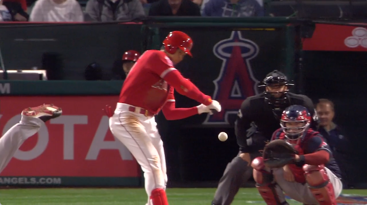 >カルフーンが三塁にいて、ワイルドピッチで1点入った。そんでその後すぐに大谷が3ランホームラン打った