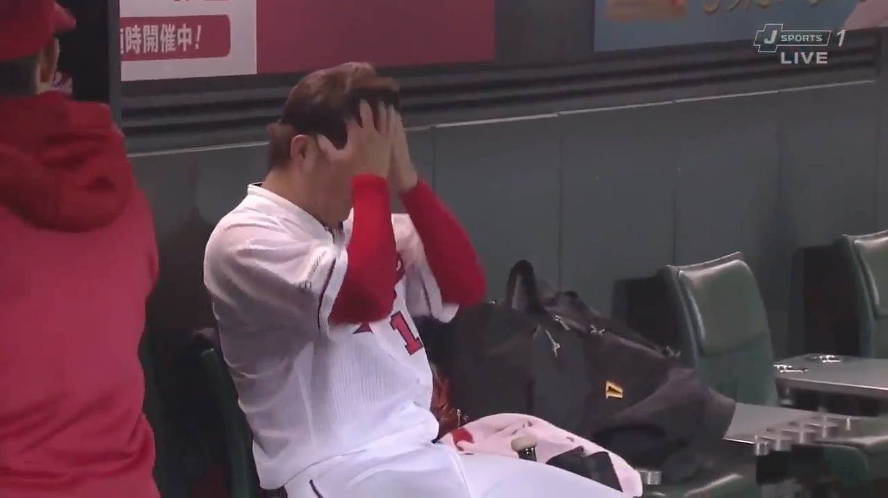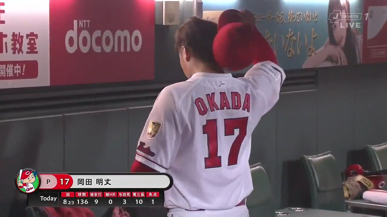 カープ岡田、完封逃し帽子を叩きつけ悔しがる。9回2死まで無失点