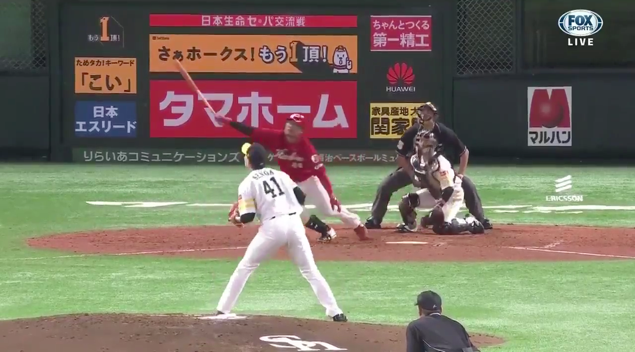 ~広島ソフトバンク戦4回表、1塁に鈴木誠也を置いて打者松山竜平~