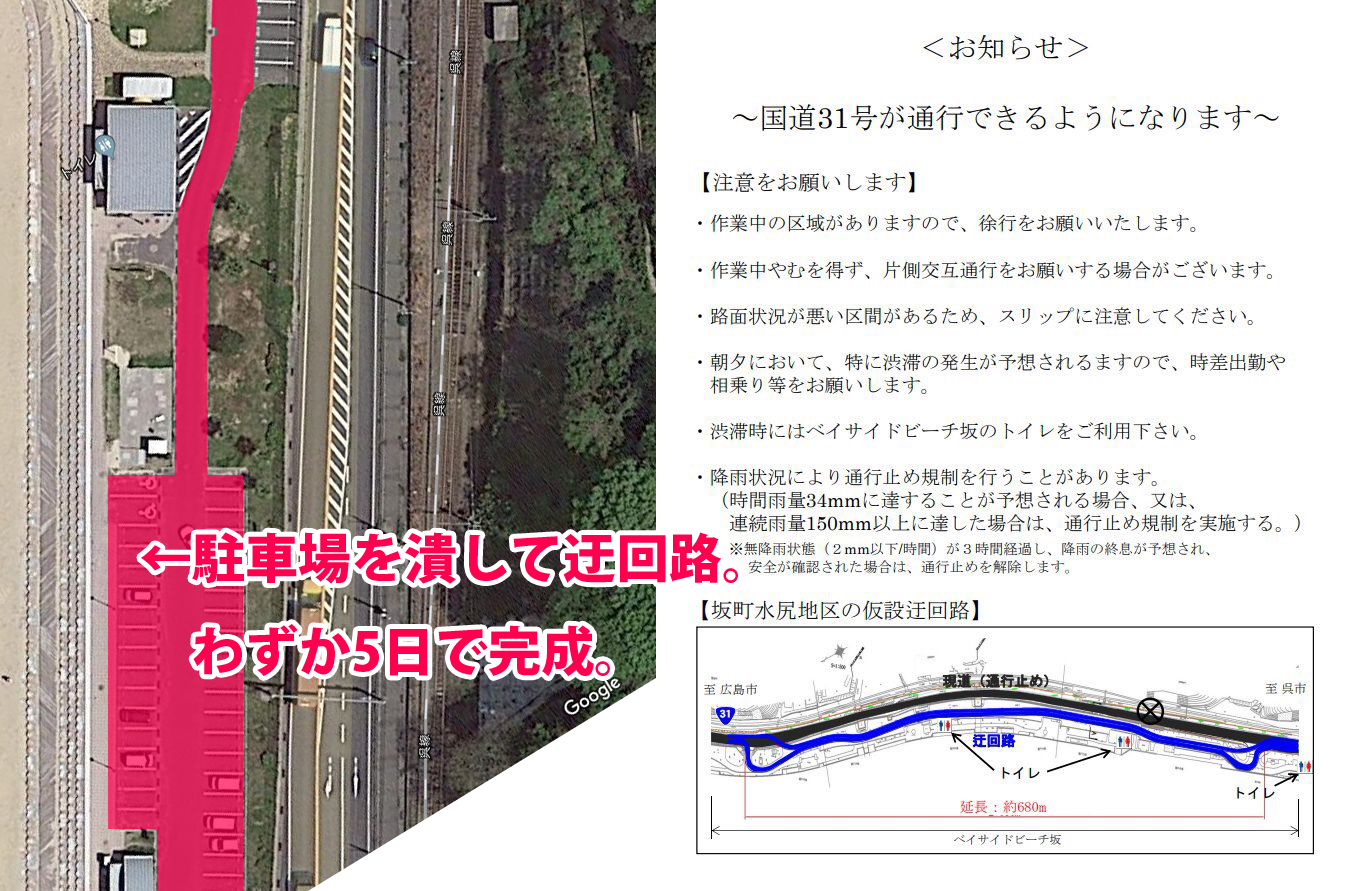 【西日本豪雨】国道31号が全線復旧 迂回路仮設、5日ぶり(7/12 0:00) https://t.co/r7NhtRS6Yu
