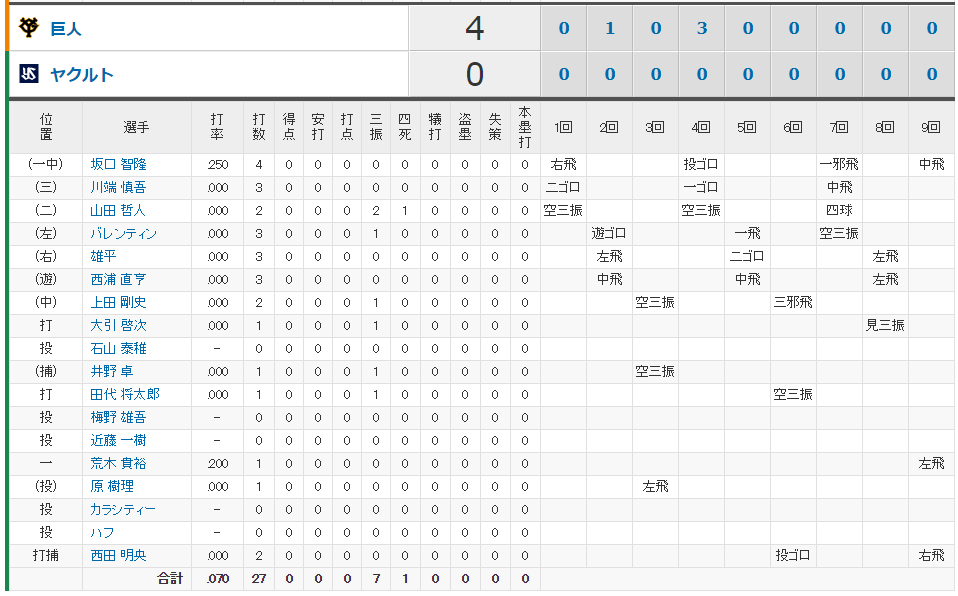 巨人も菅野山口以外はベンツ内海今村の3回だけだからね