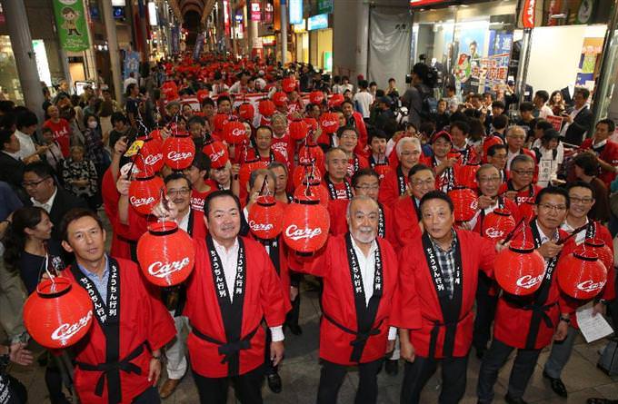 広島ジョンソン「ちょうちん行列」に乱入!カープファンとハイタッチし“祭り”を楽しむwwwww