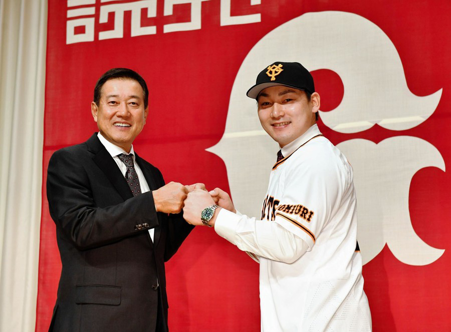 会見には、原辰徳監督(60)も同席した。推定年俸4億5000万円の5年契約で、背番号は「8」に決定した。