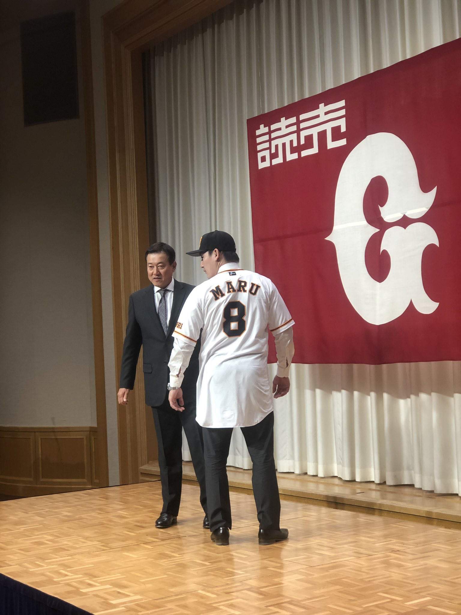 「ジャイアンツでプレーさせていただきます丸佳浩です。チームの勝利にひとつでも貢献できるプレーをたくさんしていきたい」と抱負。現在の心境は「まずはやってやるぞ、という前向きな気持ち。早く野球がしたい」と、決意をみなぎらせた。