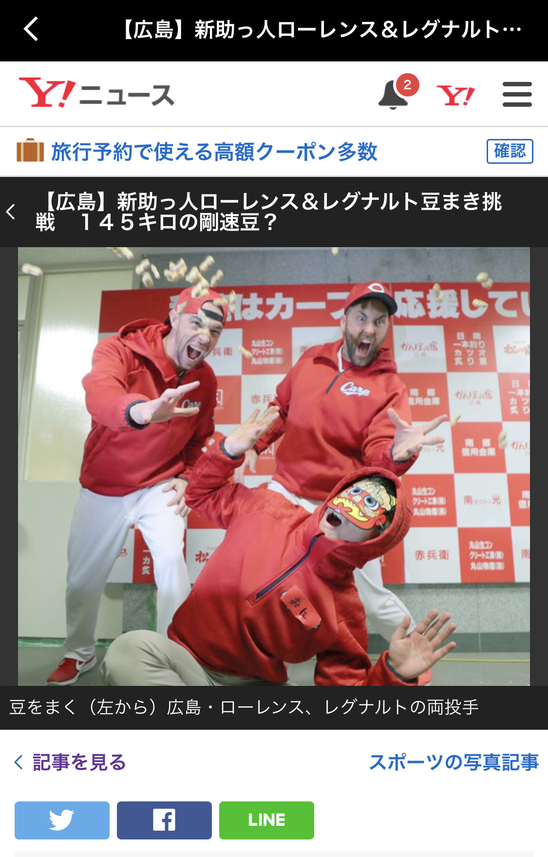 【広島】新助っ人ローレンス&レグナルト豆まき挑戦 145キロの剛速豆?