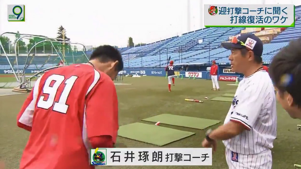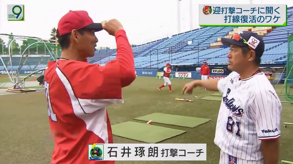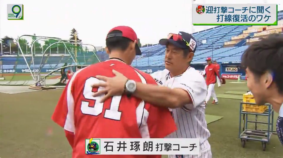 広島・迎コーチのインタビュー中に、ヤクルト・石井琢朗コーチが乱入wwwww