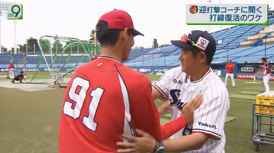 NHKのスポーツコーナー見てたら、カープの迎コーチが練習中にインタビューされていた。そこにヤクルトの琢朗コーチがチャチャいれてきて、なんかほっこりした(^^)