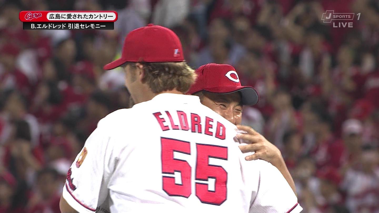 昨年まで広島でプレーしたエルドレッド氏が引退セレモニーでチームメートやファンに別れを告げた。