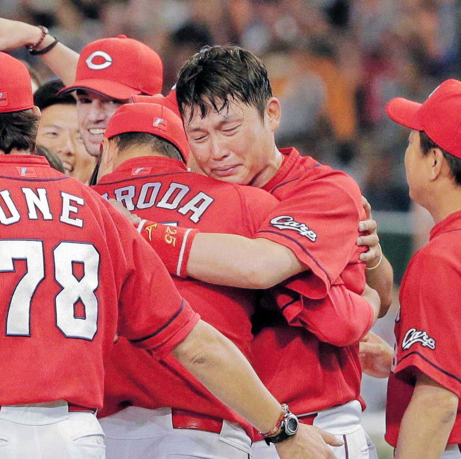 広島が25年ぶりのリーグ優勝を決めた巨人戦をお伝え。「育ててくれた広島で優勝を」夢を持ち古巣に戻った黒田と新井。若手とつかんだ歓喜の後、2人は静かに抱き合い…。