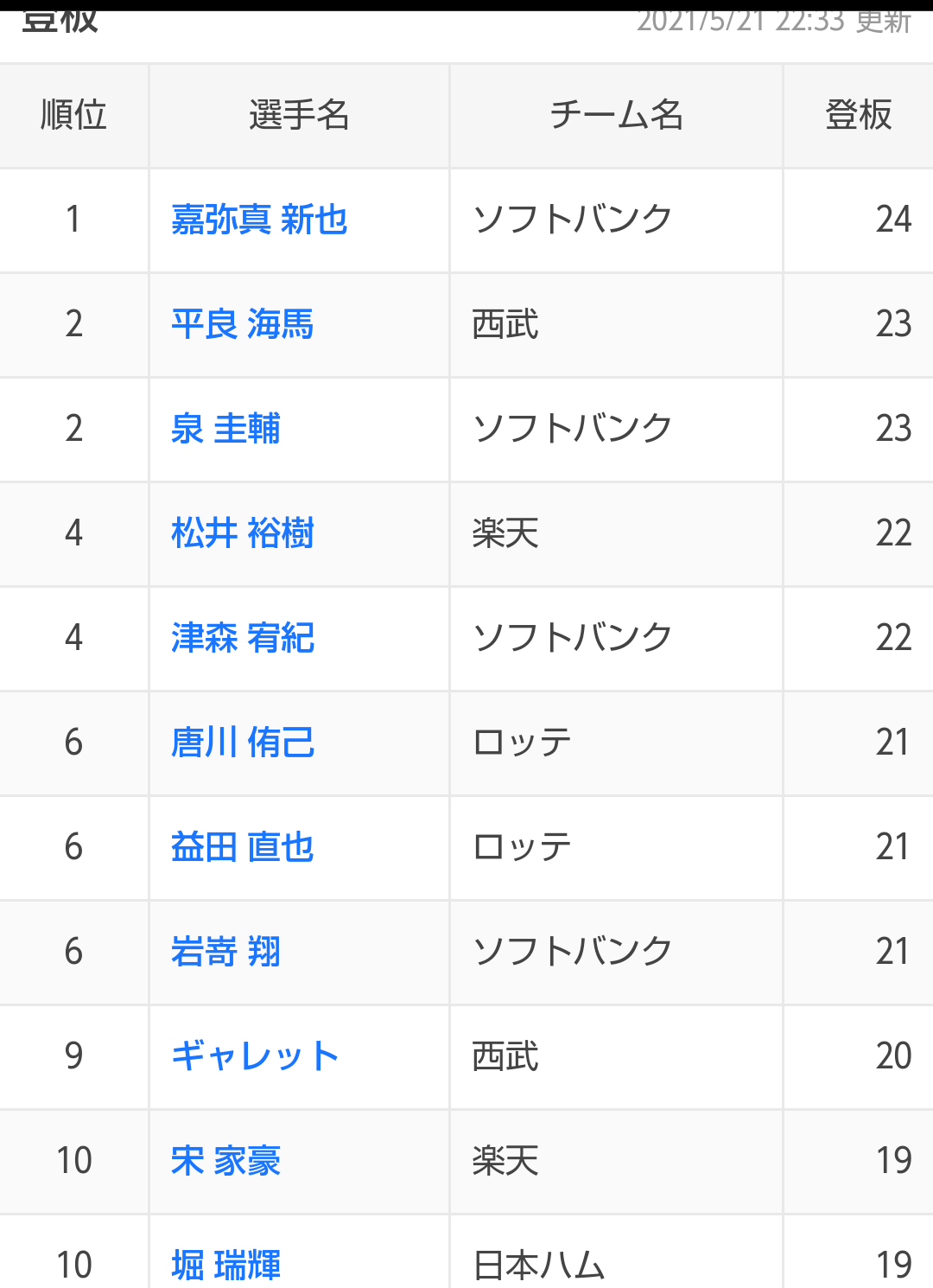パはソフトバンクロッテが多いんやっけ