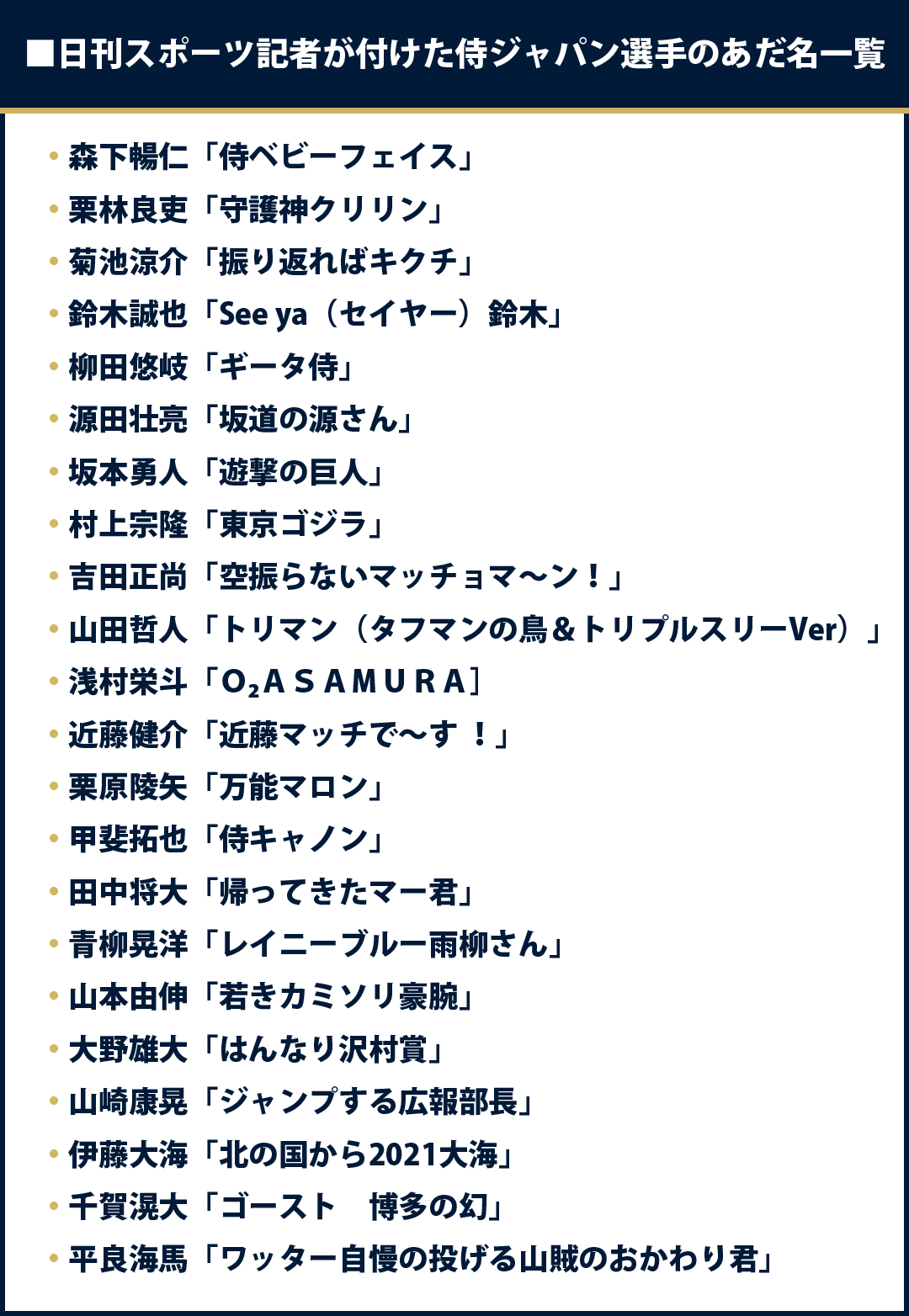 ■侍ジャパン選手全員に独自のあだ名をつける日刊スポーツ記者