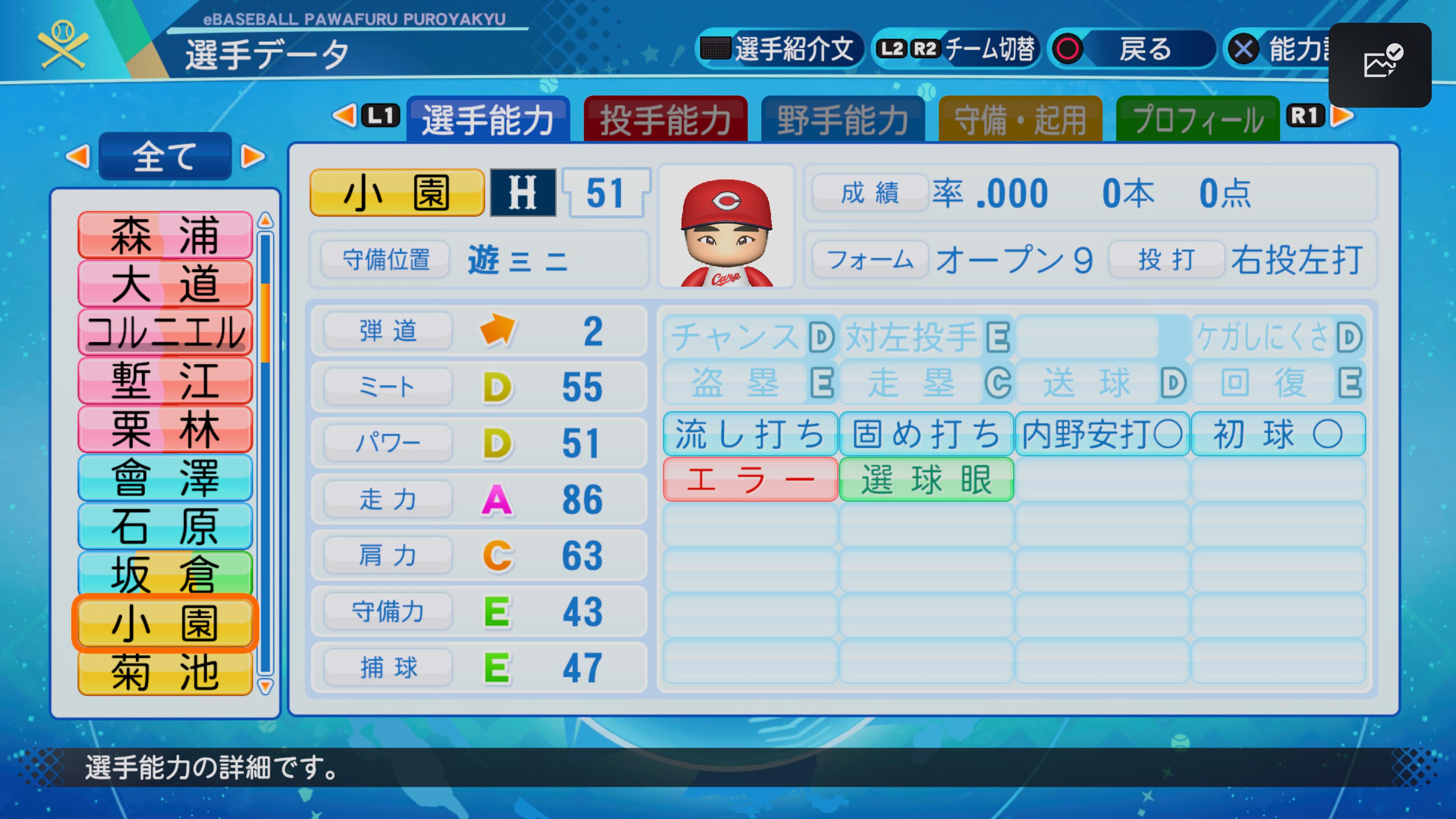 今回のアプデから赤能力の「四球」ついたしね栗林