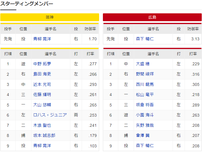 青柳対策に1から7番まで左打者を並べました!#carp#甲子園球場 pic.twitter.com/UlBvZxpVSE