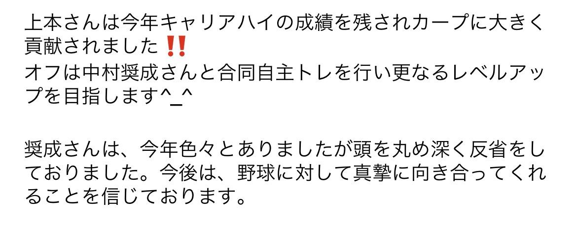 だからこそ自主トレに誘ってくれた上本は、中村奨成にとって、怒らないし庇ってくれる好都合な存在としか思っていないと邪推してしまうな。