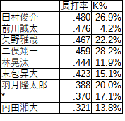三振率との兼ね合いを考えると林末包と前川がいい感じということかな