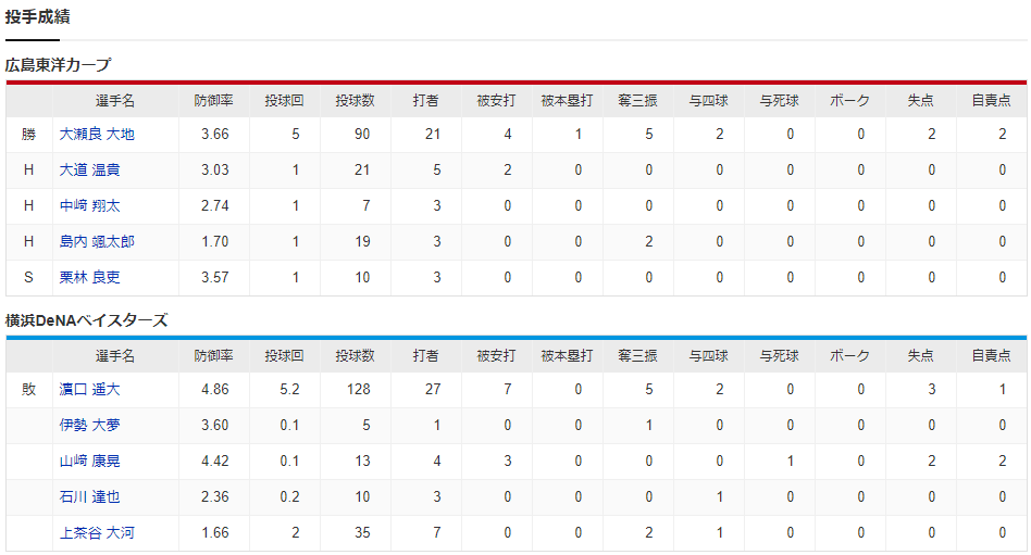 引用元:【カープ実況】大瀬良大地vs濵口遥大【広島-DeNA/横浜スタジアム】【この試合の関連記事】