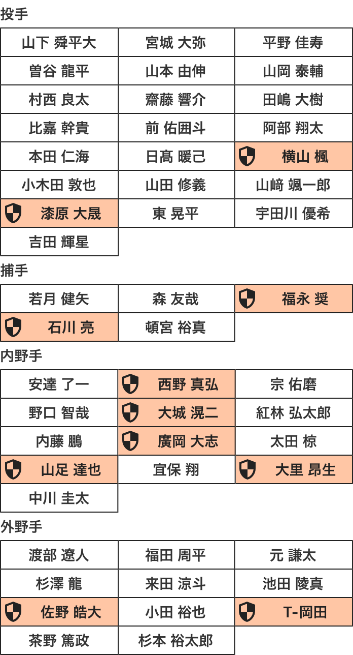 山田比嘉安達福田の誰か1人でもプロテクトされるようなら太田宜保来田茶野辺りが人的補償の候補に入ってくるから恐ろしい