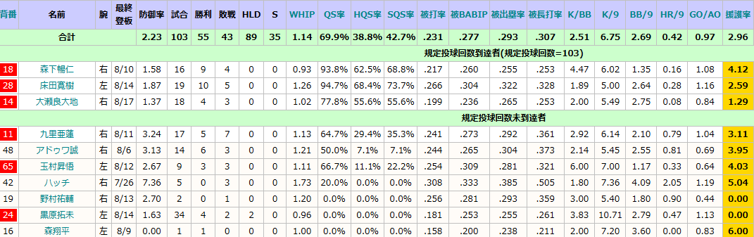 ていうかアドゥワと玉村、森や野村の力投のおかげか