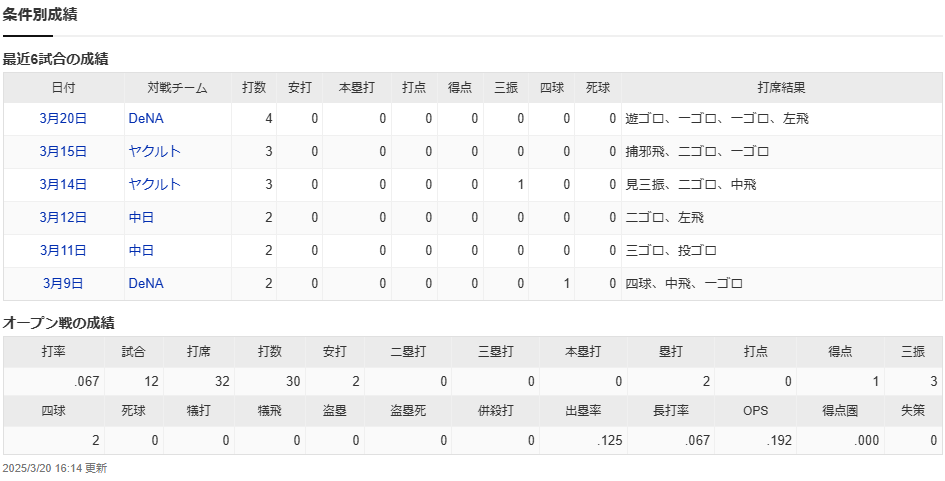 つまりオープン戦の打席は必要経費だと考えるしかない…