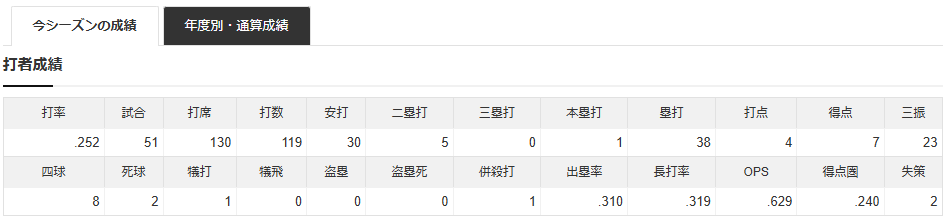 少なくともスタメンで出すには厳しい打力になってしまったと思う