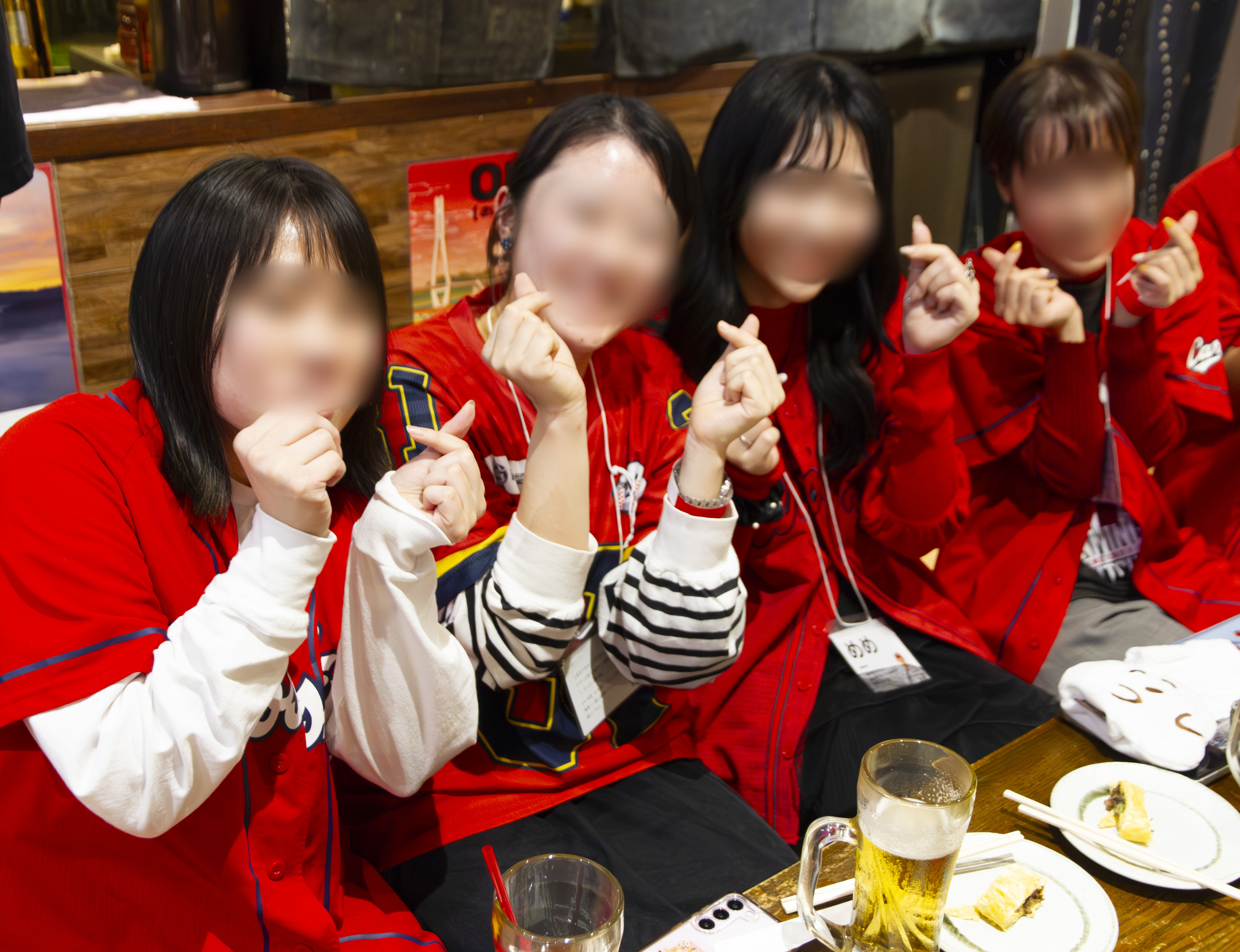 今回は恒例の全体の記念撮影だけでなく、「今後もより良い若鯉会を開くために協力して欲しい」&「顔を隠してUPする」と約束した上で、撮影担当が各テーブルを回って記念撮影を行いました。