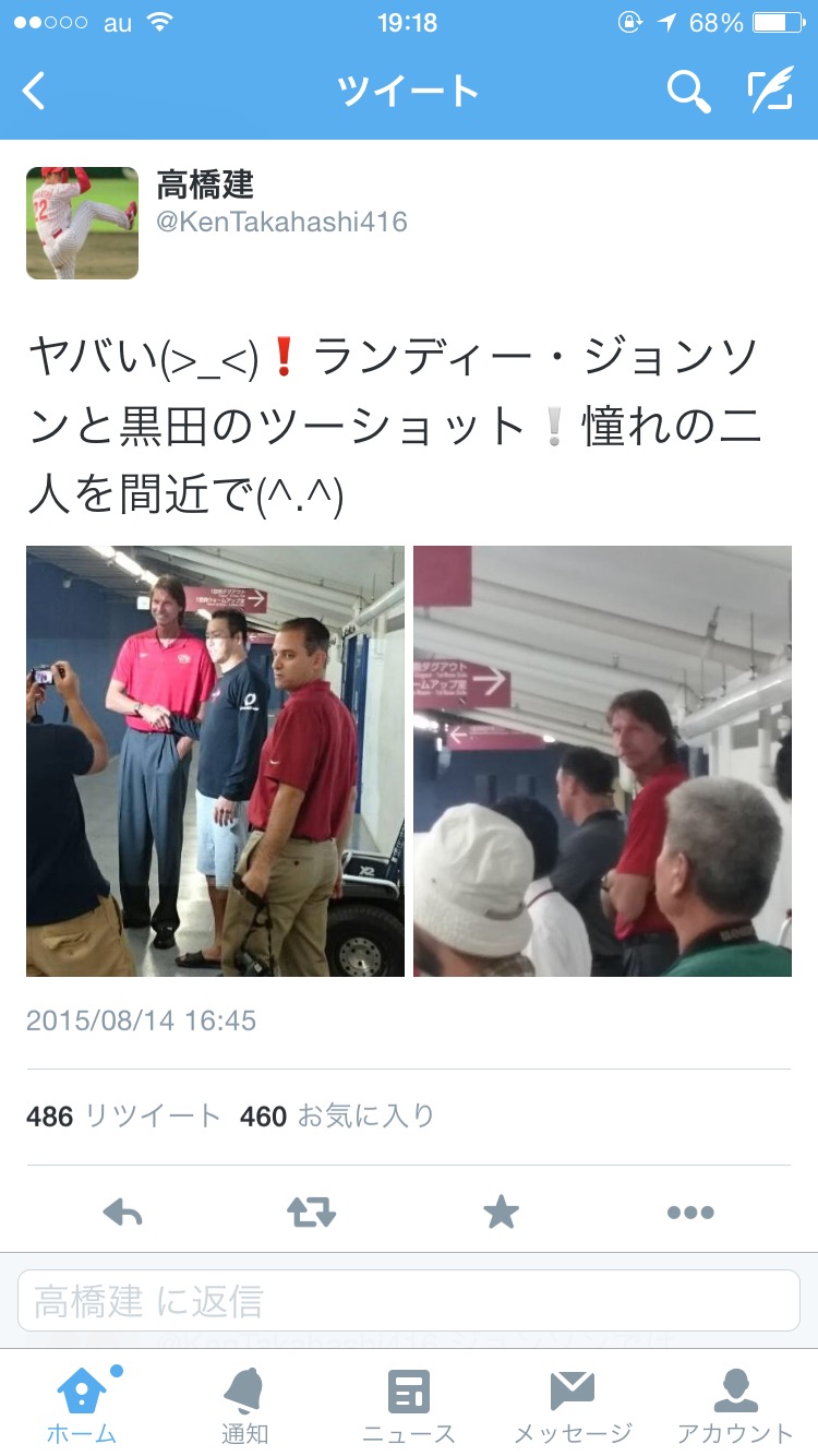 高橋建 @KenTakahashi416 ヤバい(>_<)?ランディー・ジョンソンと黒田のツーショット?憧れの二人を間近で(^.^)
