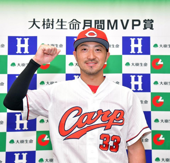 6月度の「大樹生命月間MVP」が9日に発表され、広島のサンドロ・ファビアン外野手(27)が初受賞した。