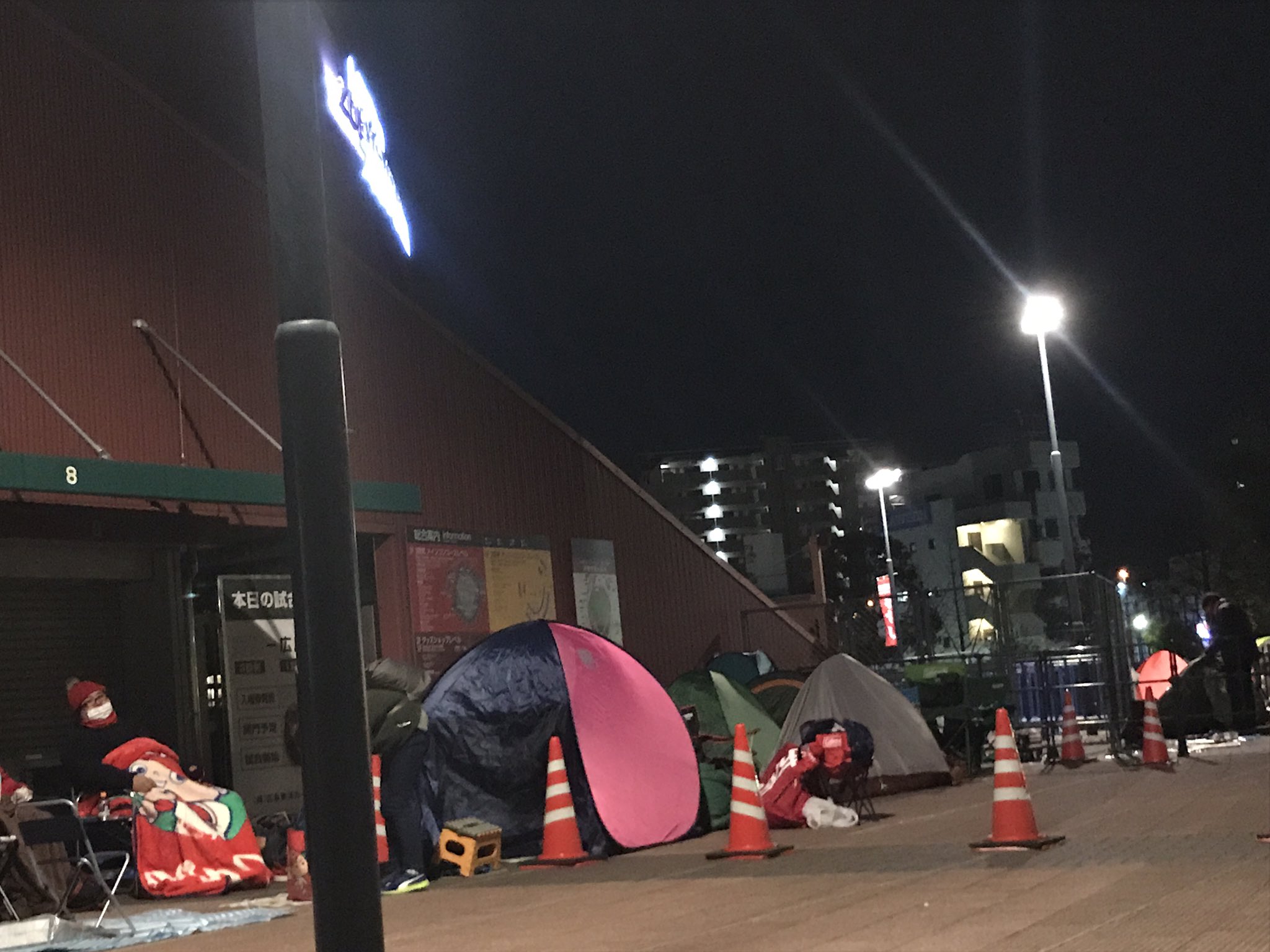 明日キャンプイン!そして多くの他球団と同じく、広島も2月1日は新グッズ発売日なのですが...。超レアグッズを求めて、実は数日前からマツダには列ができ始めていて、今はテントをはっての長蛇の列が!この極寒の中、外で一泊するとはコイ党恐るべしです(広島担当) pic.twitter.com/BoG2VJ8F9R