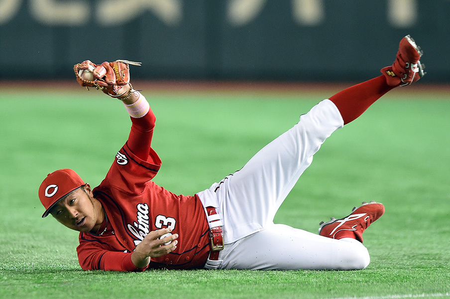 野間好捕球と好送球でダブルプレー!