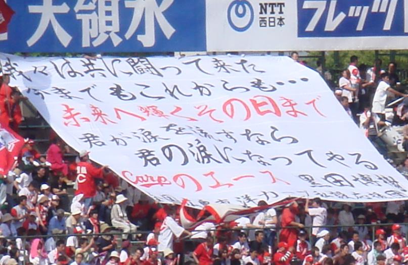 ・まあ特別応援活動中はいろいろ目配り・気配りせにゃあいけんのんで。いろいろパフォーマンスだけじゃなくて対外的なこともあるんで。球団とのパイプのことも。とにかく応援団ブースのね、鳴り物の応援とともに激烈な応援をしていただけたらと思いますね。