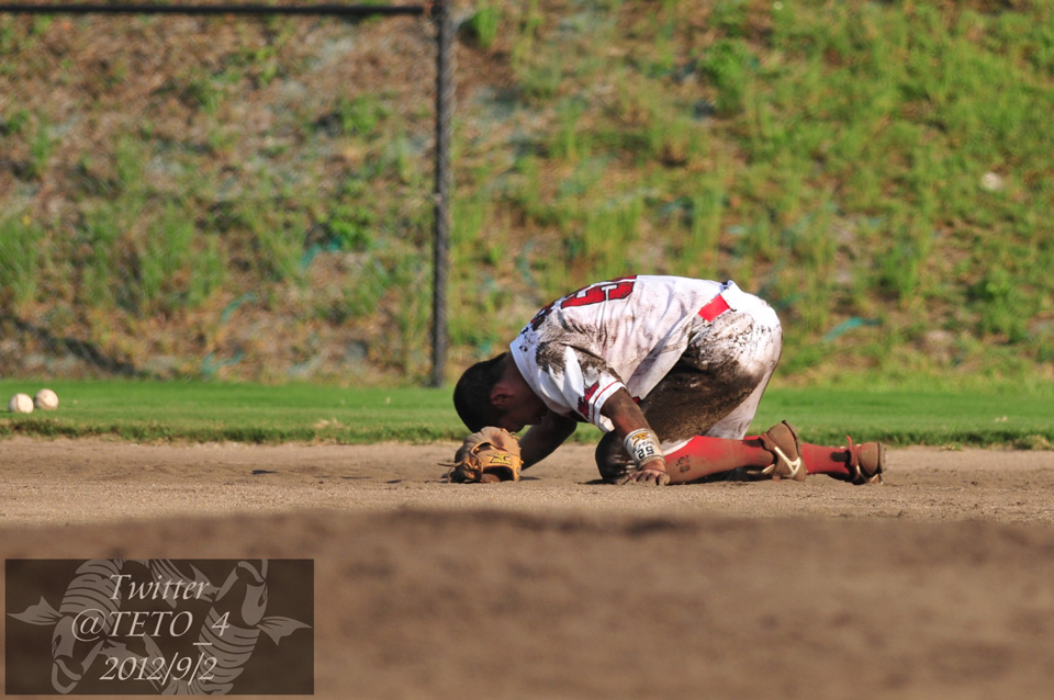 今回、てと。さんがUPしてくれた写真の中で、個人的に一番グッときたのは「前日エラーをして坊主→特守で力尽きるまで練習→グラウンドにうずくまってる庄司」の写真だ。