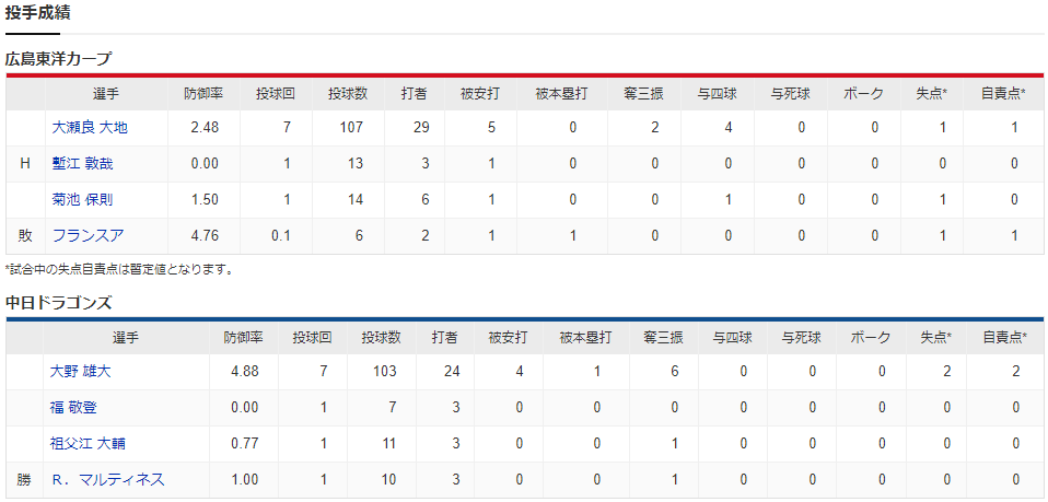 可能性(確率論)と最近のフランスアの不調を考えたら別の投手を送り込む考えもあったのでは?