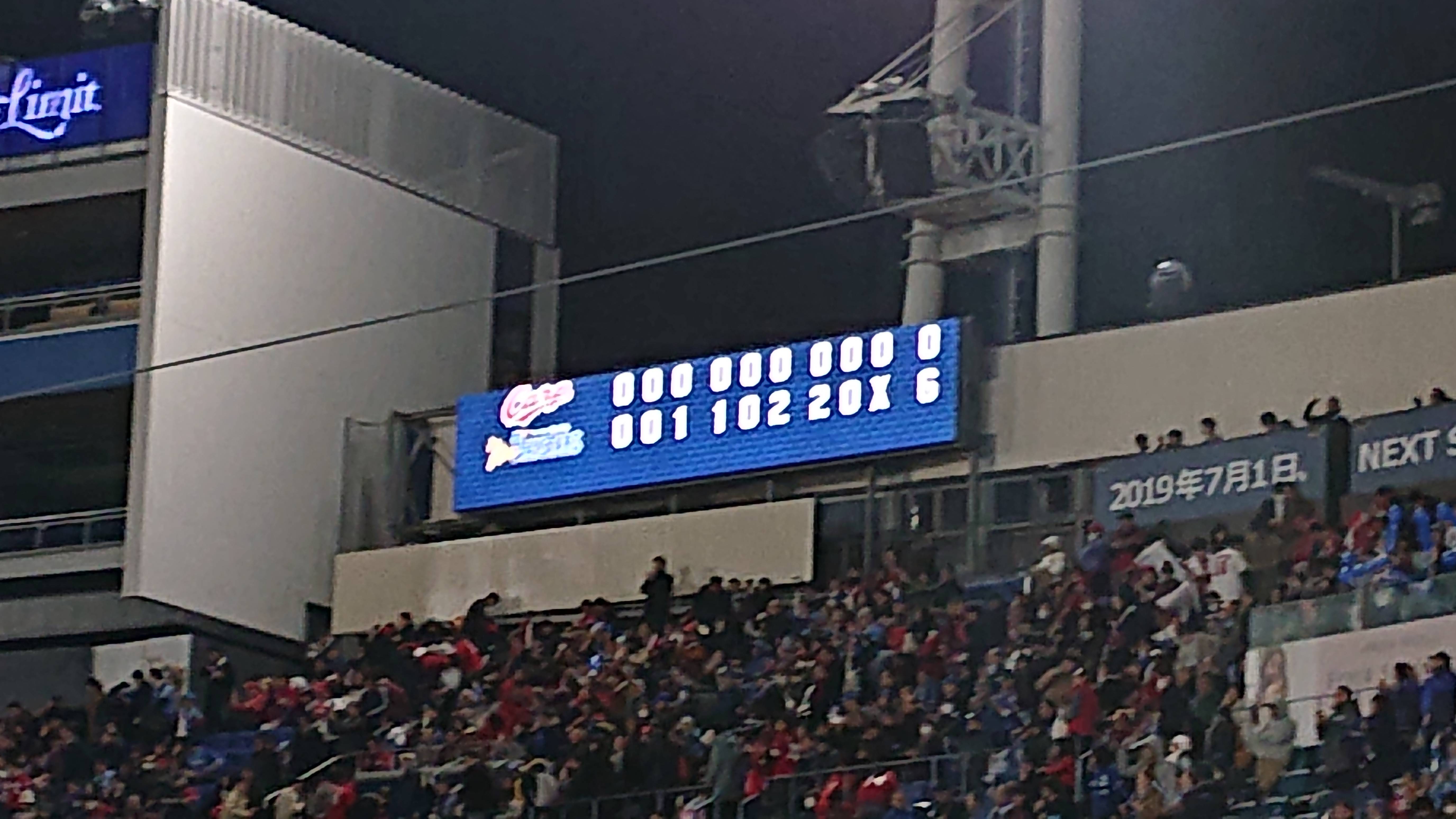 カープファンの声援、ビジターなのにやっぱ本当に凄い。