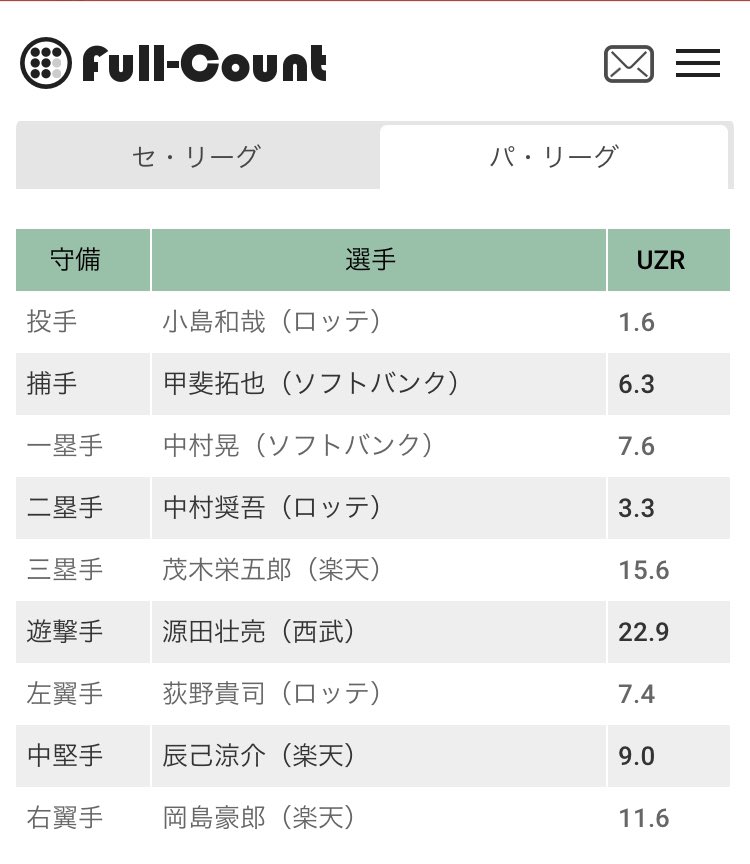 まず菊池の守備位置が異次元過ぎて指標に正しく反映されない可能性普通にあるからな