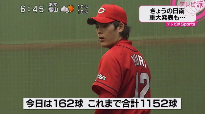 かつて佐々岡監督は現役時代に330球を投げた。黒田は343球を投げた事がある。この日の投球で2人の球数を超えた。