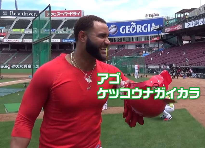 ■広島カープ公式YouTubeチャンネルに「メヒアが日本語で磯村嘉孝をイジる」動画がUPされる。磯村がメヒアの生え際を「カルボ(スペイン語でハゲ)」とイジる→メヒアは磯村のアゴをイジって反撃する。