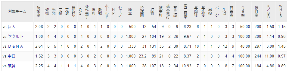 戸郷vsD 4試合1勝3敗 6.75 (vs濵口◯,vs濵口●,vs井納●,vs大貫●)