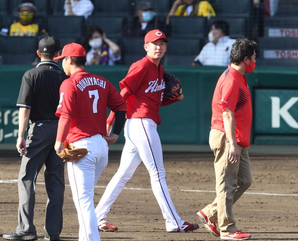 広島 秋山にアクシデント?三回の守備から交代